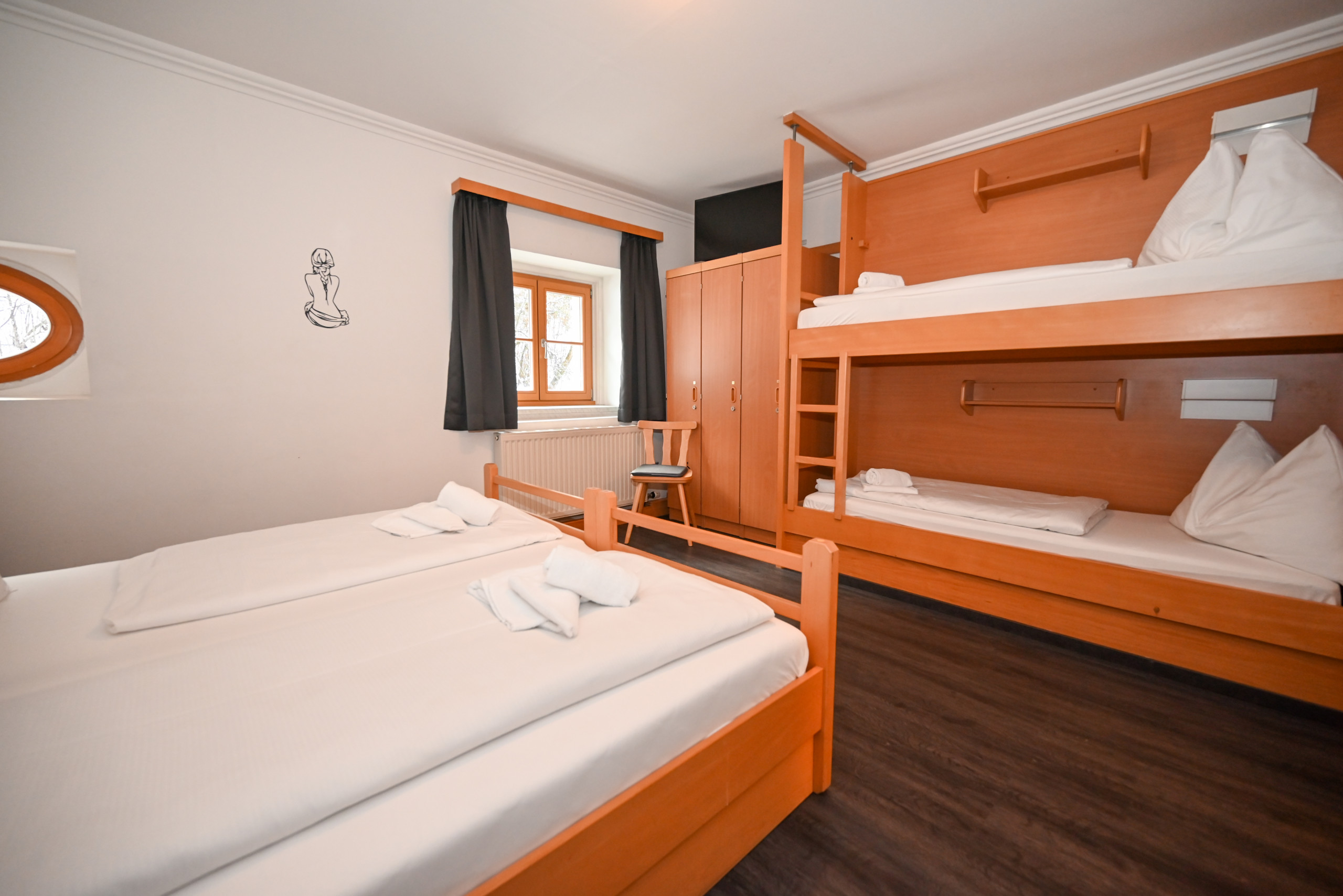 - 1 bedroom with double bed and bunk bed
