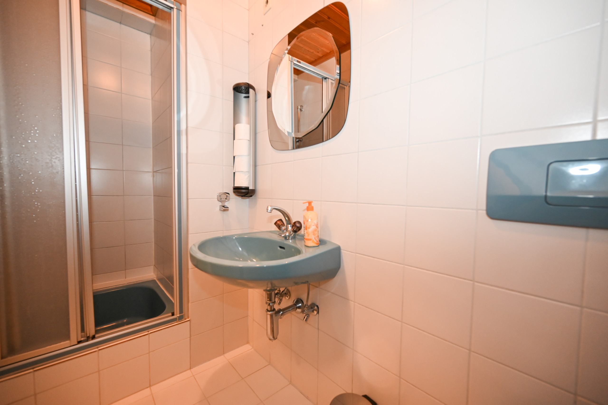 - Bathroom with shower, toilet